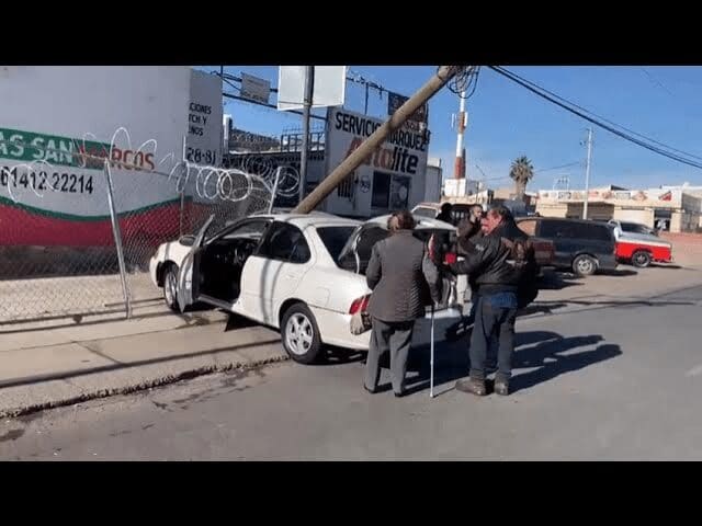 Una mujer adulta mayor perdió el control de su vehículo en el cruce de Tecnológico y Escudero, causando daños materiales significativos al impactar una camioneta, un poste y una malla ciclónica.