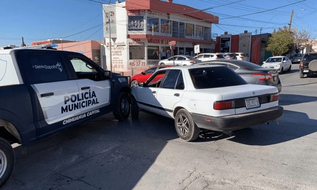 Un choque entre una patrulla de la Policía Municipal y un vehículo particular ocurrió en la intersección de Independencia y Terrazas, sin que se reportaran personas lesionadas, solo daños materiales. Las autoridades ya realizan las investigaciones.