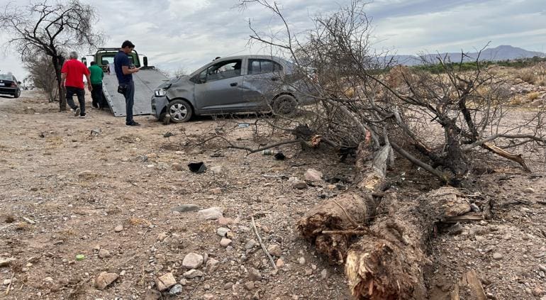 Durante la mañana de este jueves, un adulto mayor protagonizó un accidente vial al perder el control del vehículo que conducía sobre la carretera Aldama, en el tramo comprendido entre Chihuahua y dicha localidad. El percance ocurrió a la altura del kilómetro 3.5, cuando el automóvil se salió del camino y colisionó contra un huizache, el cual fue derribado por la fuerza del impacto.