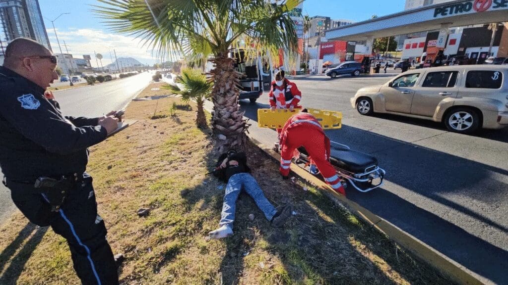 Compañeros del joven acudieron de inmediato para auxiliarlo y lo colocaron sobre el camellón con el fin de resguardarlo del tráfico mientras esperaban a los servicios de emergencia.