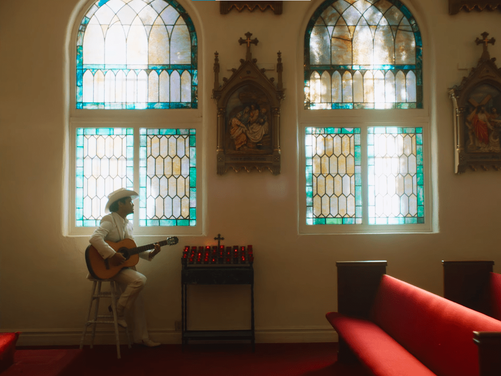 El videoclip de Risk It All amplía la propuesta musical al recrear una celebración ambientada en una iglesia decorada con la imagen de la Virgen de Guadalupe. También muestra un grupo de mariachis acompañando al cantante, vestimenta tradicional, flores, velas y elementos típicos de fiestas mexicanas.