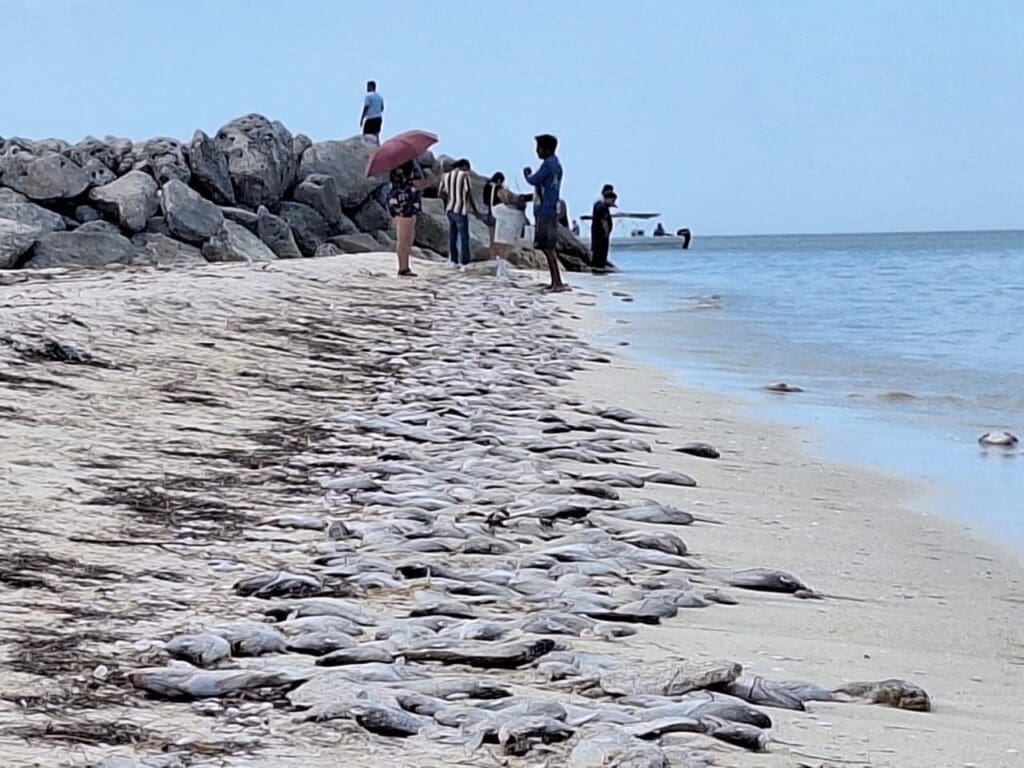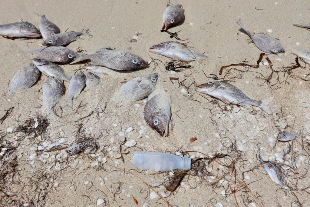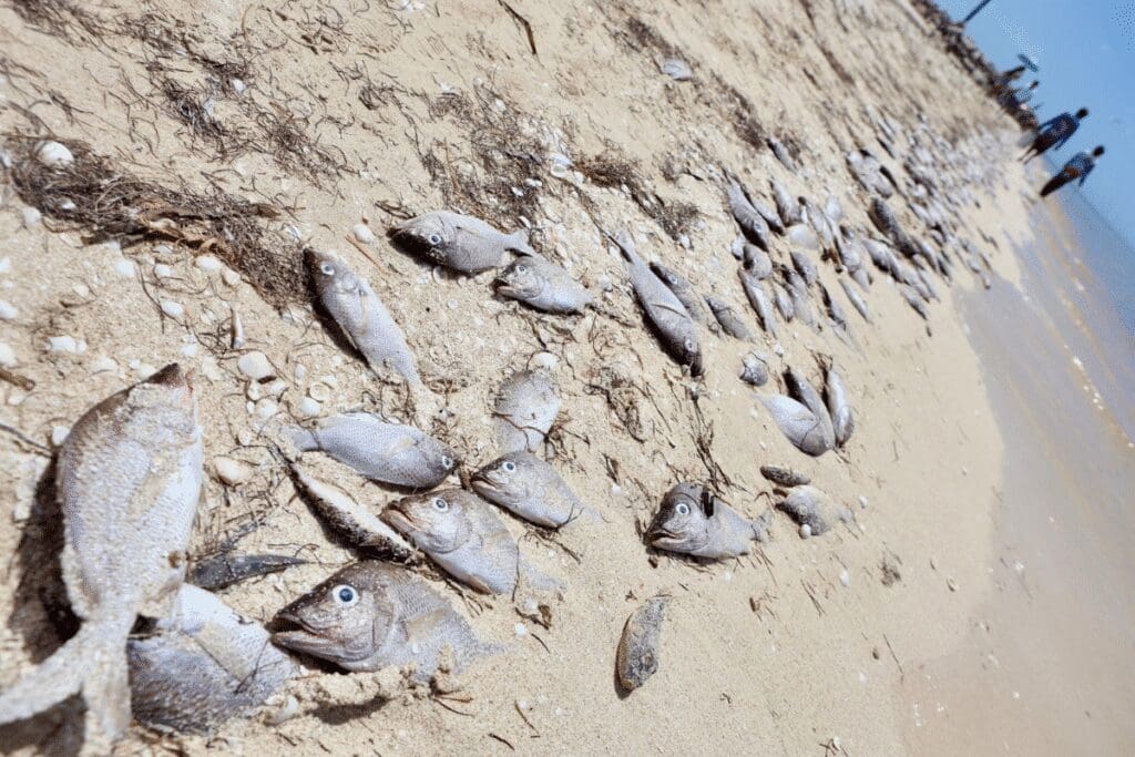 Ante estos hechos, autoridades ambientales señalaron que es muy probable que se trate de un fenómeno de marea roja, que ocurre cuando florecen algas microscópicas que liberan toxinas dañinas para la vida marina. Estas sustancias, además de causar la muerte de peces, pueden provocar irritaciones en la piel humana y afectan la calidad del agua.