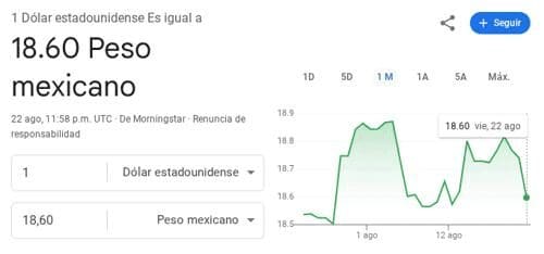 De acuerdo con información publicada por el Banco de México, el tipo de cambio dólar spot —utilizado como referencia entre bancos y mercados financieros— terminó la jornada del viernes 22 de agosto en 18.59 pesos por unidad.
