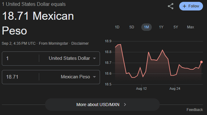 Este martes 2 de septiembre de 2025, el dólar abrió la jornada con estabilidad frente al peso mexicano, manteniendo prácticamente la misma cotización que al cierre del día anterior.