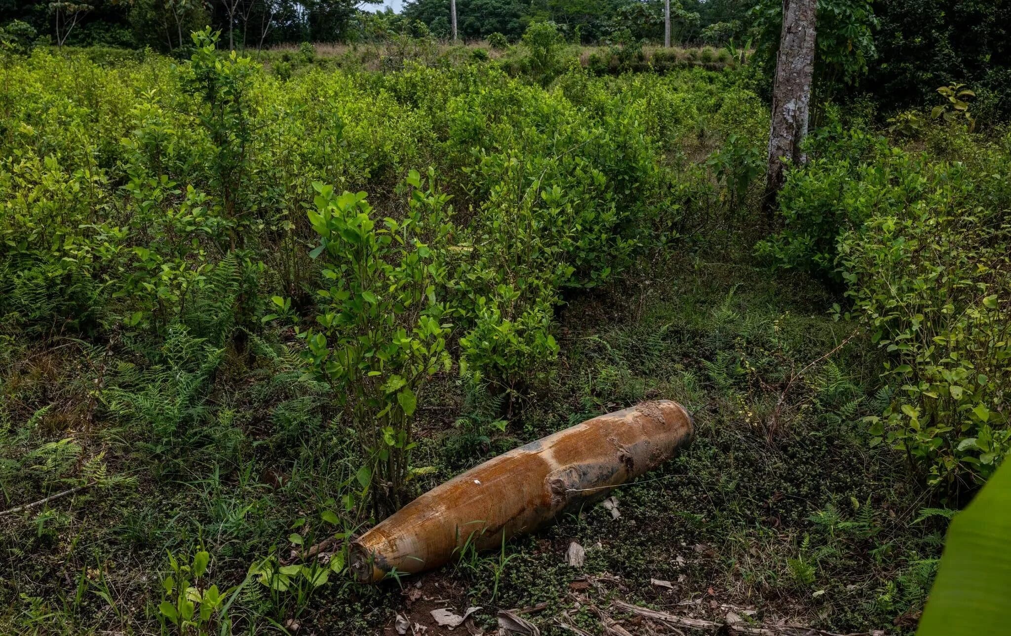 Un equipo de investigación del New York Times localizó una munición de aviación sin explotar en una zona rural de Putumayo, Colombia, a menos de un kilómetro de la frontera ecuatoriana. El artefacto, identificado como una bomba Mark-82 de 500 libras, yacía entre cultivos de coca y plátanos. Según expertos, el explosivo —equivalente a 192 libras de TNT— habría sido letal en un radio de 229 metros a la redonda de haber detonado. El estado de la bomba es crítico: conserva el cable de activación y la espoleta, lo que la mantiene como una amenaza activa y peligrosa para los residentes.