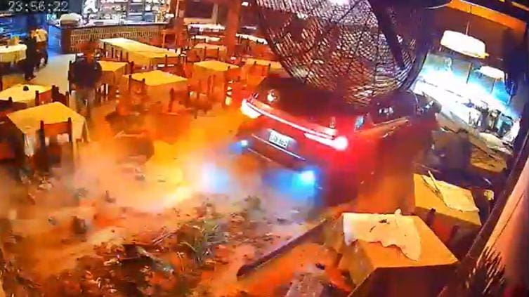 El video que circula muestra el momento en que el local, hasta entonces pacífico, es impactado violentamente por el automóvil que entra a gran velocidad y penetra en el interior del restaurante. Los clientes y empleados que se encontraban en el lugar corren para ponerse a salvo ante la inesperada emergencia.