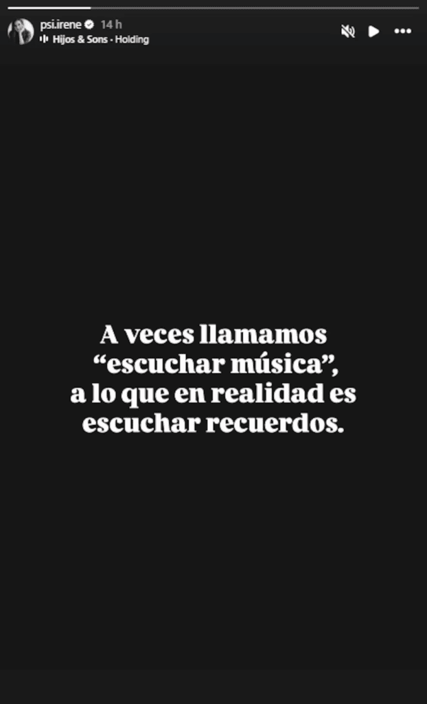 “A veces llamamos ‘escuchar música’, a lo que en realidad es escuchar recuerdos”, escribió Larios, acompañando el texto con una canción. Aunque no mencionó explícitamente a su esposo, el mensaje fue interpretado por internautas como una expresión de duelo.