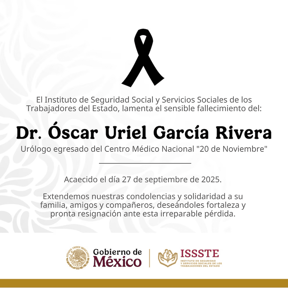 El deceso del médico fue lamentado públicamente por el ISSSTE mediante una esquela: “Con profundo pesar, el ISSSTE lamenta el fallecimiento del Dr. Óscar Uriel García Rivera, Urólogo egresado del Centro Médico Nacional ‘20 de Noviembre’, acaecido el 27 de septiembre de 2025, a consecuencia del accidente ocurrido en el Puente de la Concordia”. Días antes, el 17 de septiembre, también se reportó la muerte del chofer de la pipa, identificado como Fernando Soto Munguía.