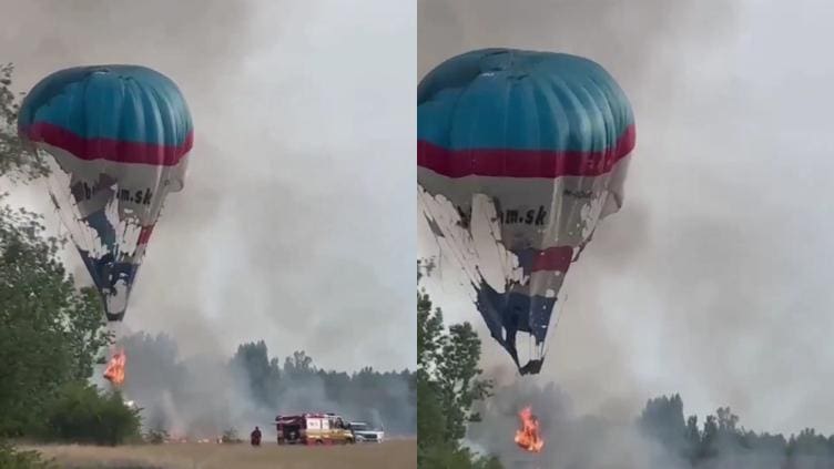 Un grave incidente ocurrió este 27 de junio cerca de la aldea de Bolesov, en Eslovaquia, cuando un globo aerostático con pasajeros a bordo comenzó a incendiarse en pleno vuelo. A través de redes sociales, se difundió un video impactante donde se observa la aeronave envuelta en llamas, mientras los cuerpos de emergencia intentaban controlar el fuego.