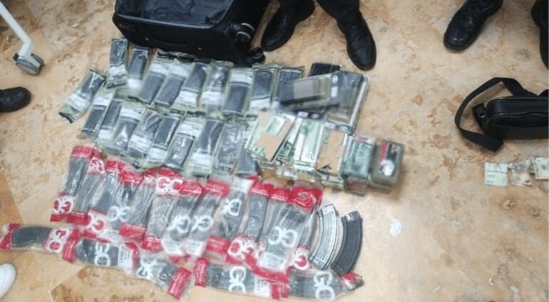 De acuerdo con el informe oficial difundido el pasado miércoles, la inspección se realizó en la zona de aterrizaje, durante una revisión de seguridad rutinaria. Los agentes federales procedieron a revisar el equipaje de los pasajeros, donde se localizó un arsenal que incluía un fusil de asalto calibre 7.62 milímetros, 3 mil 300 cartuchos útiles, 50 cargadores, un tambor y cinco cintas eslabonadas con 100 cartuchos calibre 5.56 milímetros cada una.