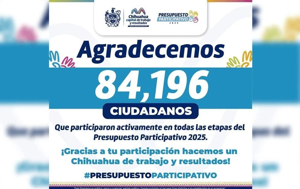 El Presupuesto Participativo 2025 registró una participación récord de 84,196 votantes en Chihuahua. Mañana se revelarán los proyectos ganadores, a los cuales se destinarán más de 307 millones de pesos.