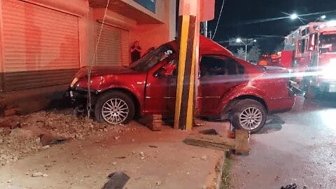 Un Jetta rojo chocó contra un poste en el Ortiz Mena, dejando a dos jóvenes atrapados. Bomberos y Cruz Roja los rescataron; el conductor quedó inconsciente y fue hospitalizado en estado grave.
