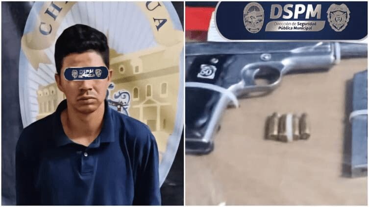 Gracias a un reporte ciudadano que alertó sobre posibles disparos en la vía pública, elementos de la Policía Municipal lograron la detención de un hombre armado y en posesión de droga en la colonia 11 de Febrero, al sur de la ciudad de Chihuahua.