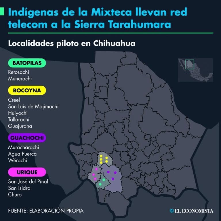 Una red indígena desarrollada en Oaxaca llevará internet y telefonía a 13 pueblos de la Sierra Tarahumara, cubriendo zonas marginadas de Batopilas, Bocoyna, Guachochi y Urique.