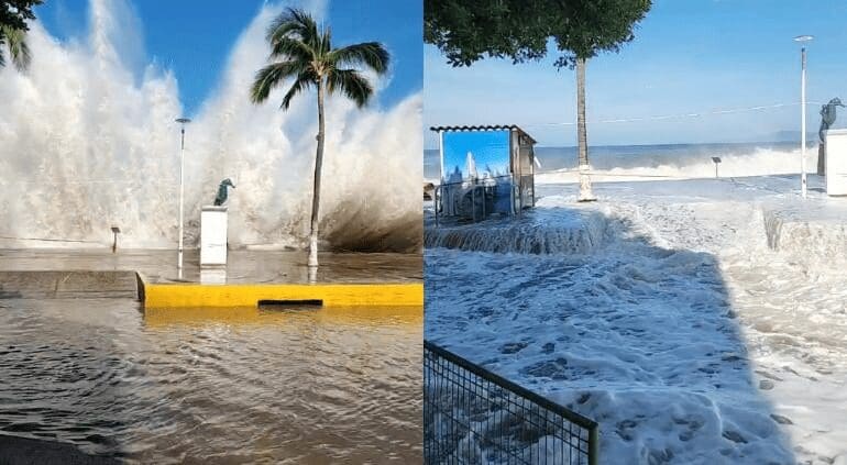 Puerto Vallarta vivió este martes una situación inusual y preocupante: el mar se desbordó y alcanzó varias calles del centro debido al fuerte oleaje ocasionado por el huracán Priscilla, que se intensificó a categoría 2 en el Pacífico mexicano.