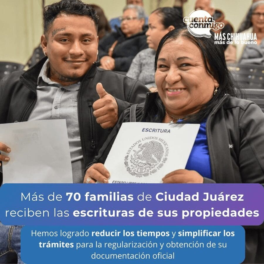 Más de 70 familias en Juárez reciben escrituras de propiedad para asegurar su patrimonio