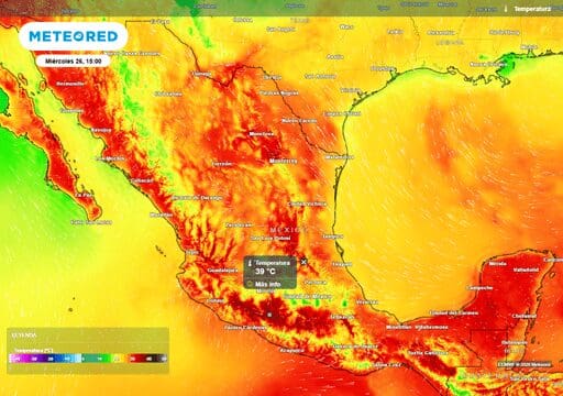 En cuanto a las temperaturas, los extremos son evidentes. Mientras en las zonas montañosas de Chihuahua y Durango se registran temperaturas de hasta -10 °C con heladas, los estados de Sinaloa, Nayarit, Jalisco, Colima, Michoacán, Guerrero, Oaxaca y Chiapas experimentan temperaturas que oscilan entre los 35 y 40 °C. Otras entidades, como Baja California Sur, Sonora, Chihuahua, Tamaulipas, Querétaro, Hidalgo y Morelos, mantienen valores cercanos a los 30 °C.