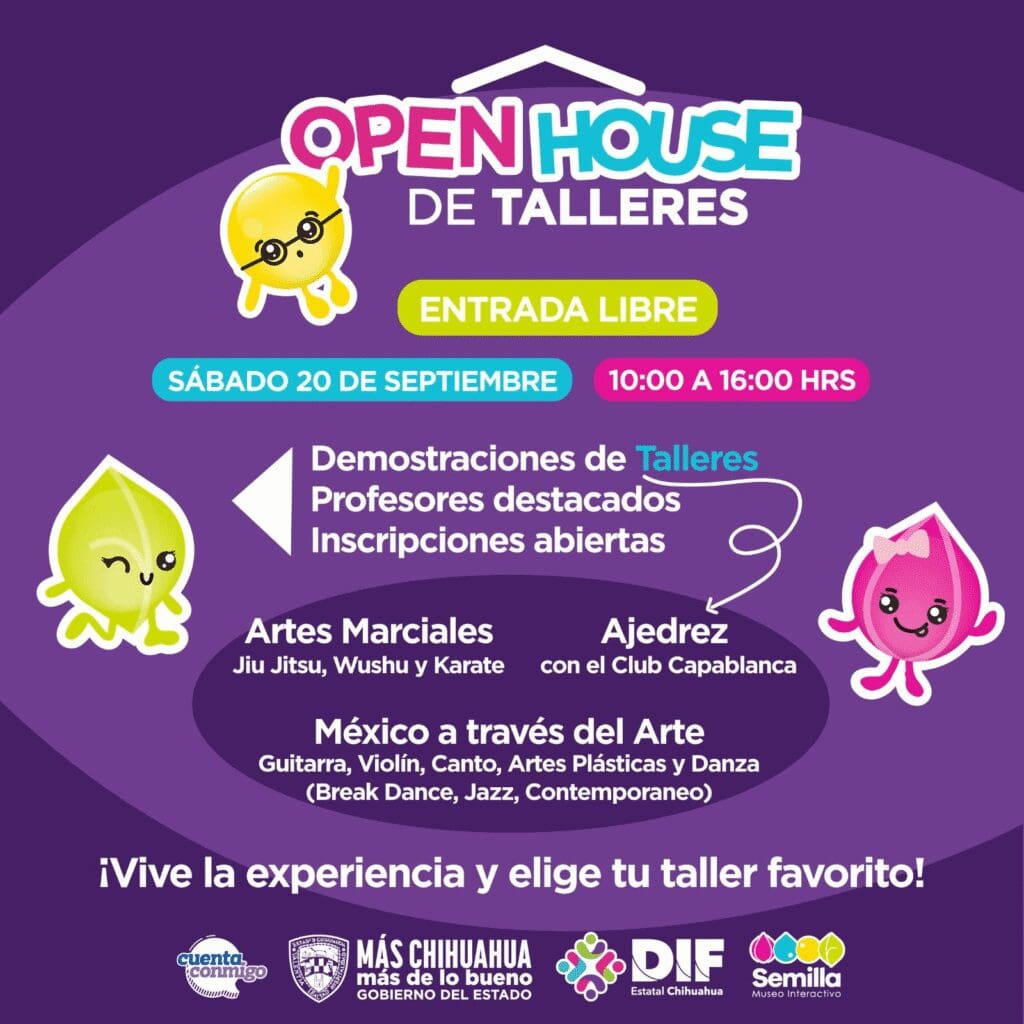 El Museo Semilla invita a las familias chihuahuenses a disfrutar de una jornada llena de actividades culturales y recreativas con motivo del Open House de Talleres, que se llevará a cabo el próximo 20 de septiembre en sus instalaciones.