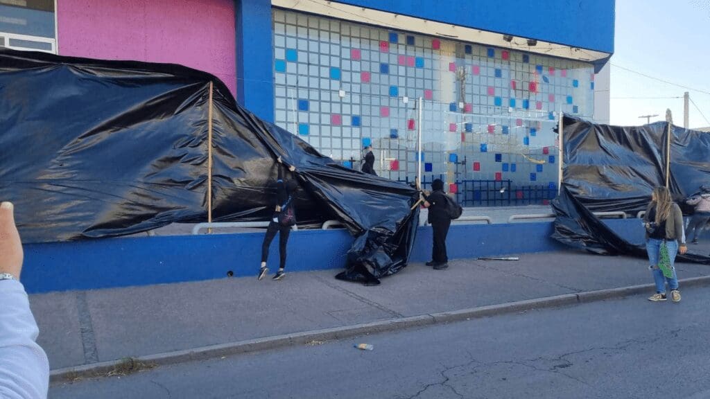 En los alrededores de la Glorieta de Francisco Villa, punto de partida de la concentración, negocios y oficinas públicas comenzaron desde días anteriores a proteger sus fachadas, sumándose a las medidas preventivas ante la jornada de protesta.