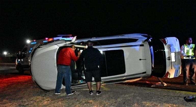Dos camionetas Nissan Xtrail protagonizaron un accidente en el kilómetro 21 de la carretera a Ciudad Juárez. Tras el impacto, una de ellas volcó, dejando a dos adultos mayores con lesiones leves.