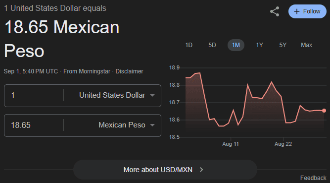 En los centros cambiarios, la cotización se mantuvo sin alteraciones relevantes, al ubicarse también en 19.16 pesos a la venta y 18.13 pesos a la compra. Con ello, el arranque de septiembre mostró un dólar estable, con ligera recuperación del peso mexicano en el mercado bancario.