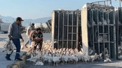 En cuestión de minutos, decenas de personas se encontraban en el lugar corriendo entre las jaulas y los restos del tráiler, intentando atrapar a las gallinas para llevárselas. Muchos las subieron directamente a sus vehículos, sin esperar la llegada de las autoridades o personal de rescate.