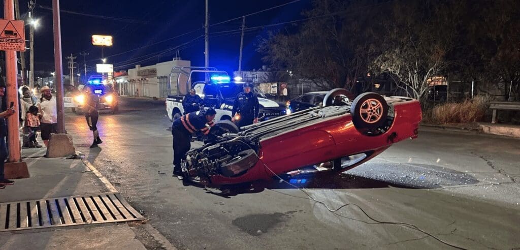 El incidente ocurrió poco antes de llegar a la calle Miguel Barragán, cuando el conductor de un vehículo Dodge Stratus, por razones aún desconocidas, impactó la base de un poste, lo que provocó que el automóvil se volcara. La fuerza del impacto dejó severos daños en el automotor y generó la obstrucción parcial de la vialidad.